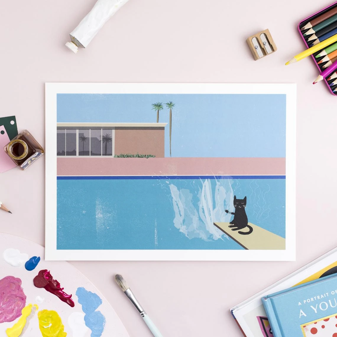 Cette impression est une prise amusante et légère sur l’original « Bigger Splash, 1967′.