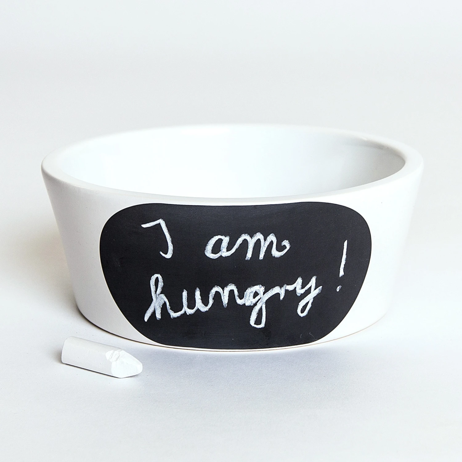 Le bol pour chien CHALK (=craie) fonctionne comme un tableau noir : on y inscrit des messages concernant le repas quotidien, par exemple, « Rosie a mangé » ou « J’ai faim »,