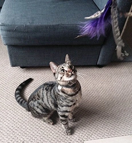 L’avantage ? Les jouets sont interchangeables grâce à des attaches, vous pouvez donc varier les plaisirs avec des plumes, souris ou oiseaux de la gamme. Les jouets s’attachent et de détachent facilement.