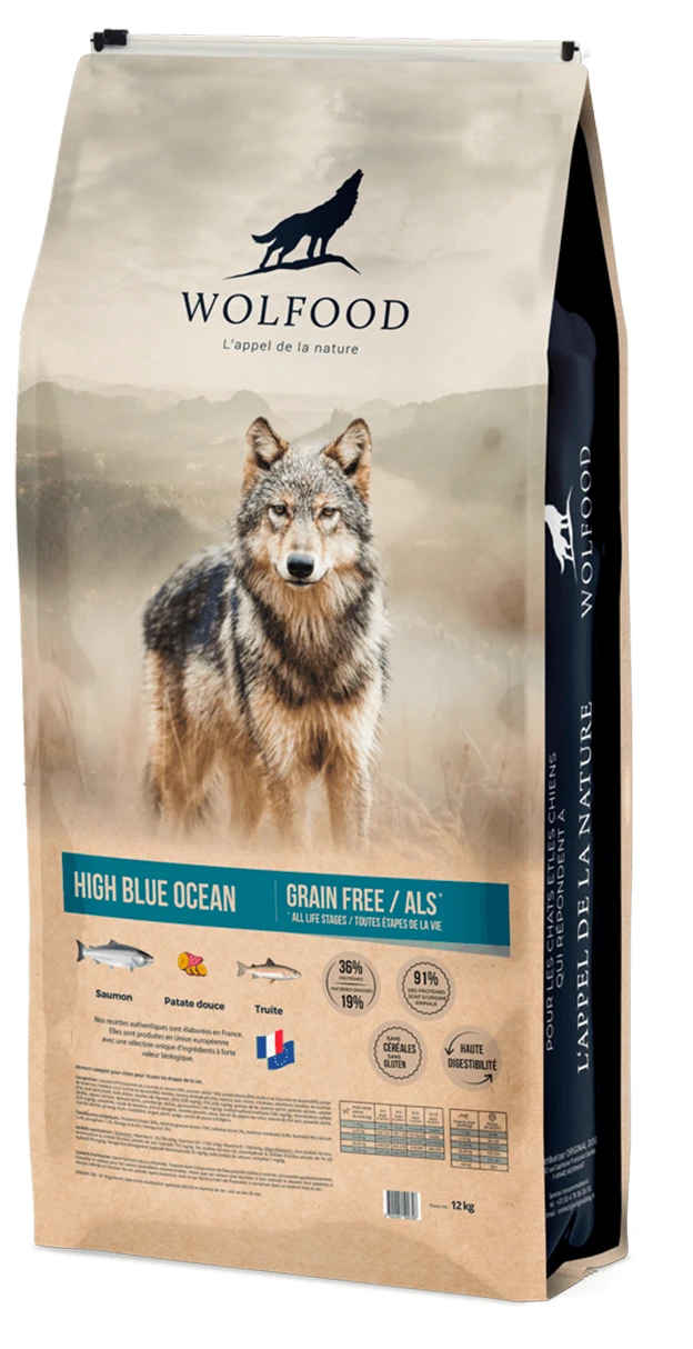 Les croquettes pour chien Wolfood High Blue Ocean sont ultra généreuses en poisson et un vrai concentré d’omégas 3.