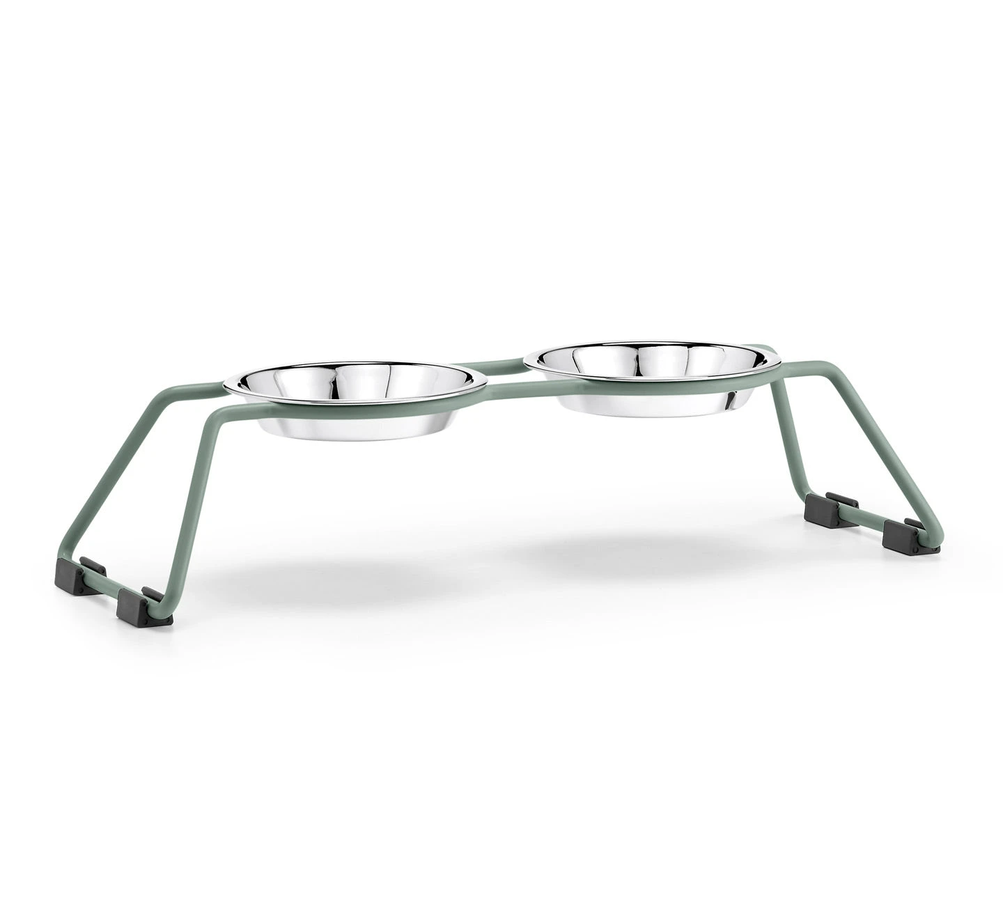 Les bols sont légèrement surélevés pour que votre chat puisse manger confortablement, et un anneau en silicone maintient chaque bol en place pour éviter les cliquetis pendant les repas. Les bols en acier inoxydable vont au lave-vaisselle et sont également disponibles séparément.