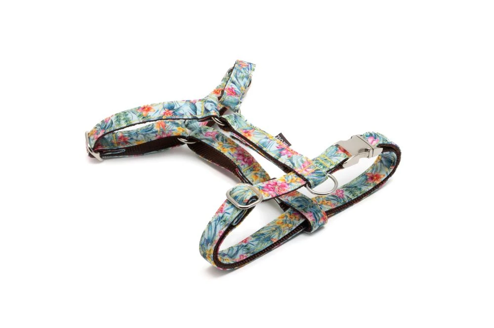 Le harnais en H pour chien en tissus fleuri de Brott Dog allie style, confort et sécurité.