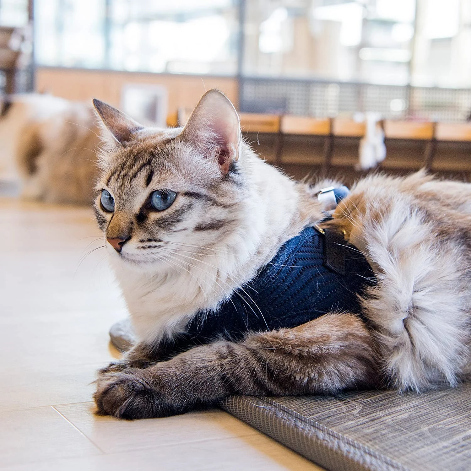 Ce harnais est disponible en bleu marine En fonction de la taille de votre chat, il convient toujours de mesurer votre chat avec un mètre à couture comme indiqué dans le tableau des tailles.