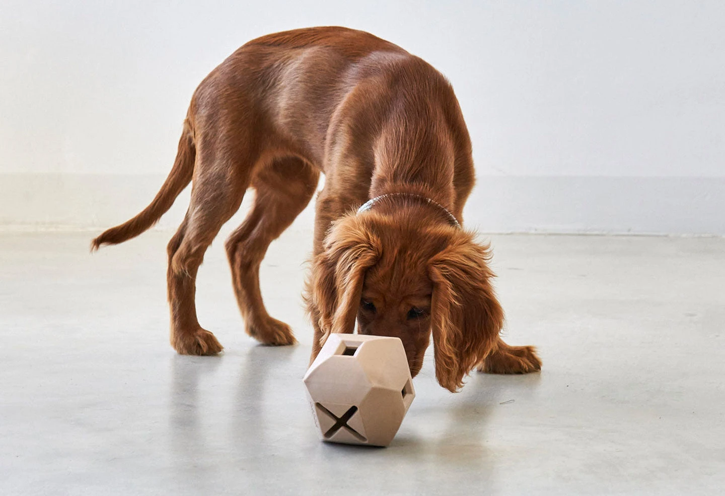- Une forme géométrique conçue pour rouler et rebondir et offrir une stimulation supplémentaire au chien