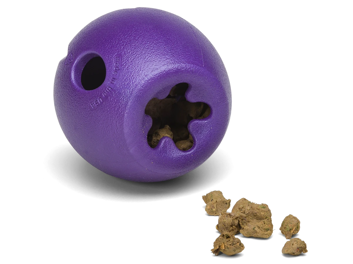 Le jouet à mâcher pour chien Rumbl est un distributeur de friandises sèches super rebondissant qui encourage le jeu.