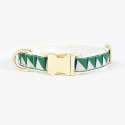 Laisse pour chien en chanvre vert émeraude, bleu et crème et en laiton ultra résistante.