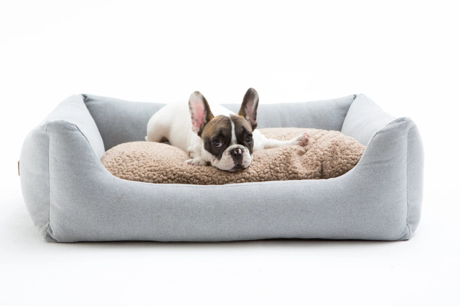 Chez duepuntootto 2.8, chaque lit pour chien a un coussin intérieur double face idéal pour les deux saisons. Le panier est chaud en hiver avec le bouclette de laine et plus frais pendant la saison estivale.