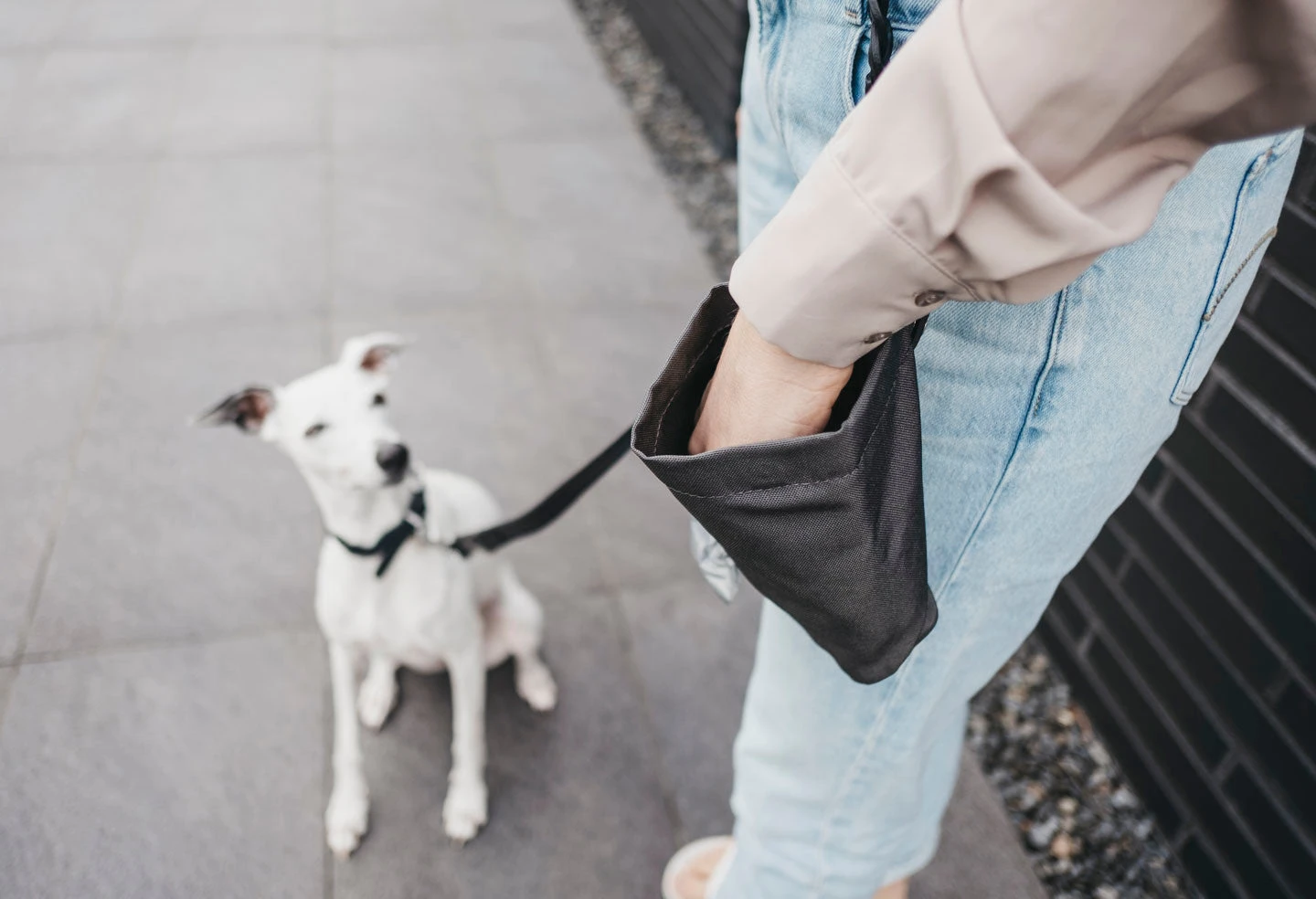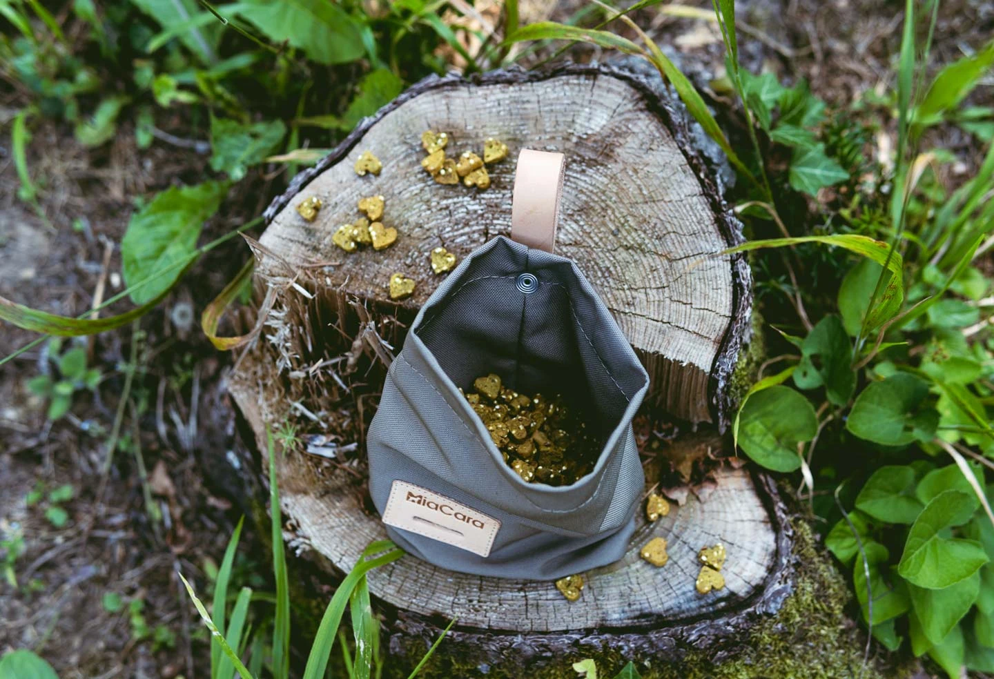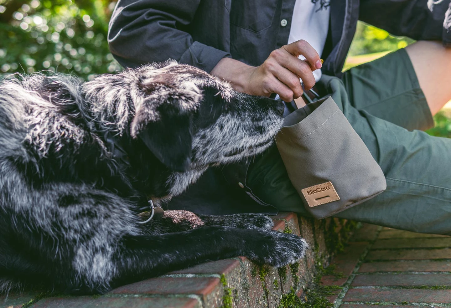 Pour garder les mains libres pendant la promenade ou l’éducation de votre chien, attachez simplement la poignée en cuir du sac à récompense Lupo sur la laisse de votre chien ou à votre ceinture et fixez-la avec le bouton-poussoir.