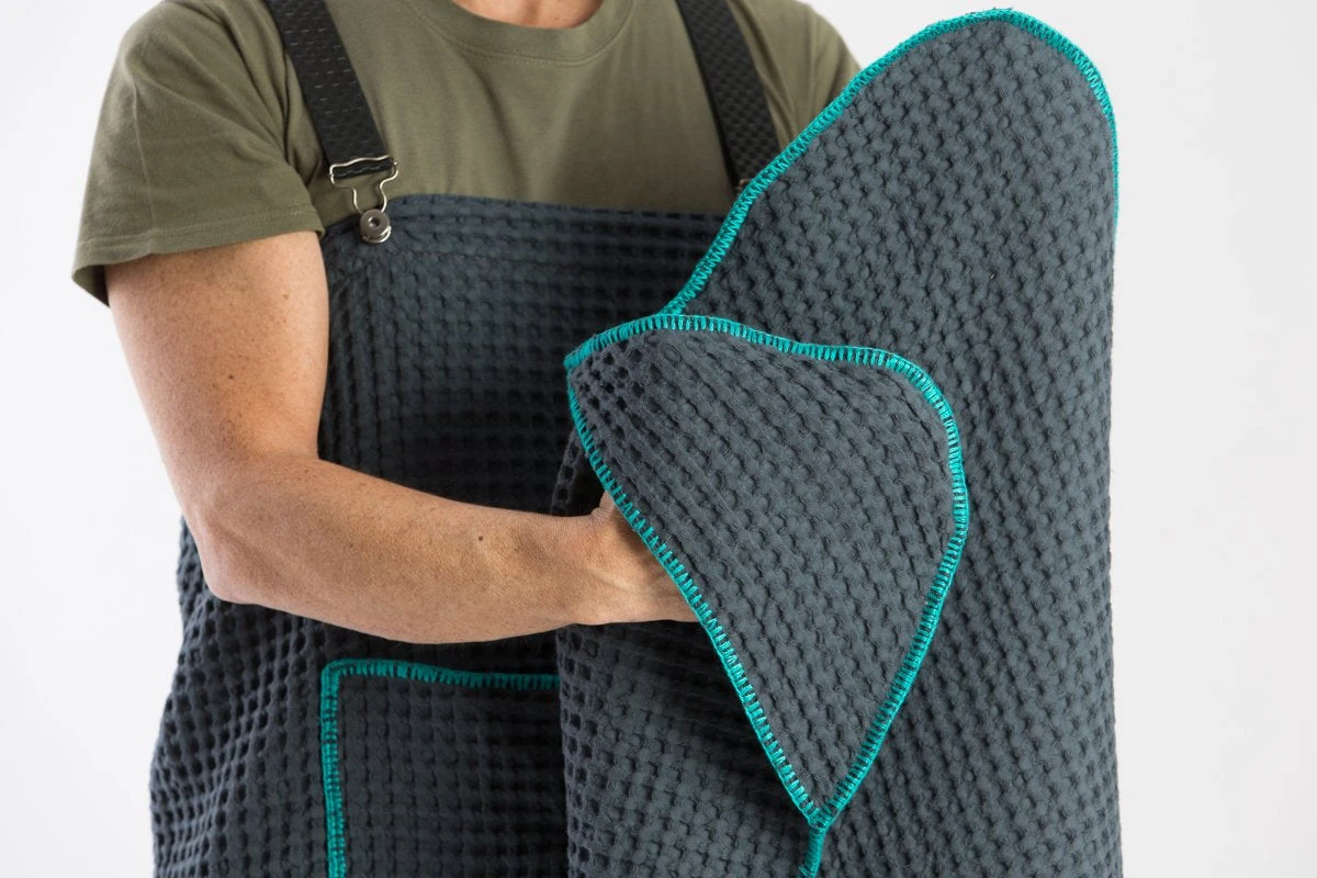 Ces serviettes de toilette pour chien Sally en nid d’abeilles ont plus d’un tour dans leur sac : grâce aux poches spéciales pour glisser vos main, vous allez masser votre chien et le maintenir immobile en même temps.