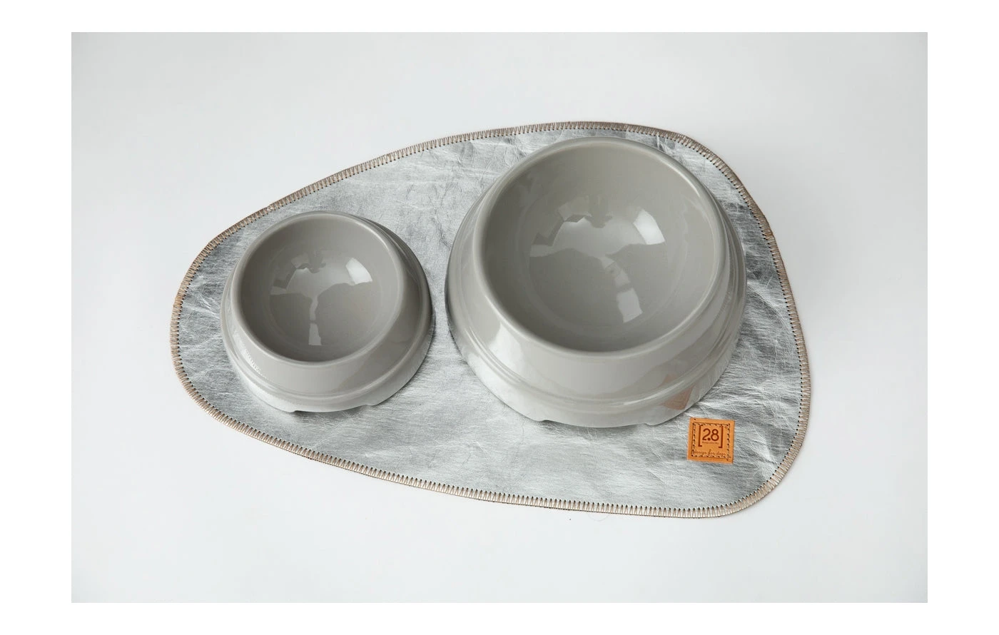 Fabriqué en papier ciré imperméable, Tina est un set de table en forme de galet qui protège vos sols des éclaboussures et des taches tout en préservant le fond des bols.
